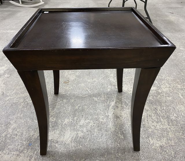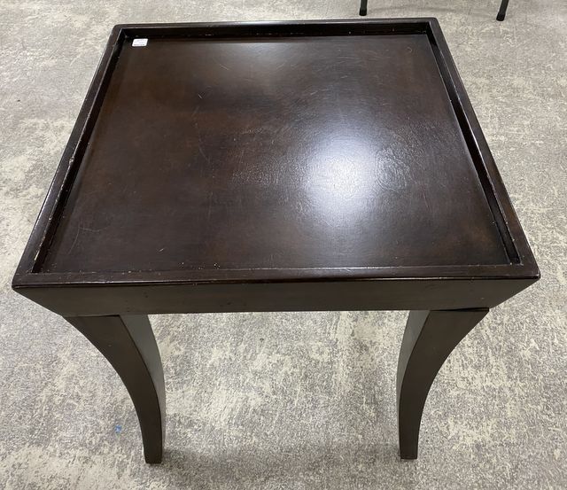 Contemporary Style Cherry Side Table, squared top, has some usage wear, 26"h., 23"w. Contemporary Style Cherry Side Table, squared top, has some usage wear, 26"h., 23"w.