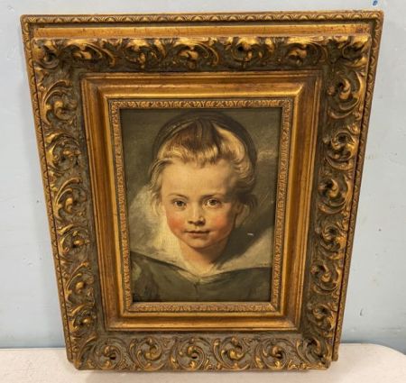 Reofect Printing Portrait of Child, ornate gold gilt framed, 18"h., 15"w. Reofect Printing Portrait of Child, ornate gold gilt framed, 18"h., 15"w.