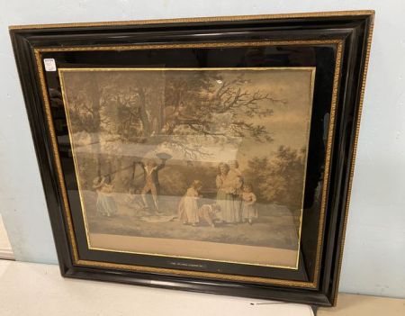 Antique Lithograph "1789 Children Birdnesting", framed, 25"h., 28"w. Antique Lithograph "1789 Children Birdnesting", framed, 25"h., 28"w.
