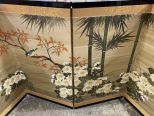 Four Panel Oriental Wall Panel Screen, hand painted, floral and birds, each panel is 24"h., 14 1/2"w. Four Panel Oriental Wall Panel Screen, hand painted, floral and birds, each panel is 24"h., 14 1/2"w.