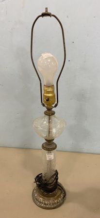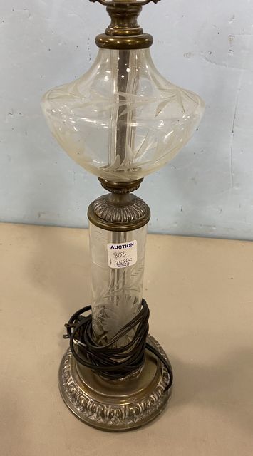 Etched glass table lamp, metal base, no shade, 25"h. Etched glass table lamp, metal base, no shade, 25"h.