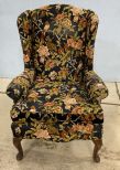 Upholstered Queen Anne Wing Back Chair, has head rest wear and arms. Upholstered Queen Anne Wing Back Chair, has head rest wear and arms.