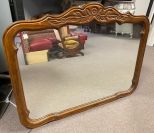 Wood Framed dresser mirror, wall hanging, flower crest, 39"h., 50"w. Wood Framed dresser mirror, wall hanging, flower crest, 39"h., 50"w.
