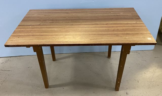 Primitive Style Hand Made Table, needs tightening, illuminated top, has wear, 28"h., 48"long, 26"w. Primitive Style Hand Made Table, needs tightening, illuminated top, has wear, 28"h., 48"long, 26"w.