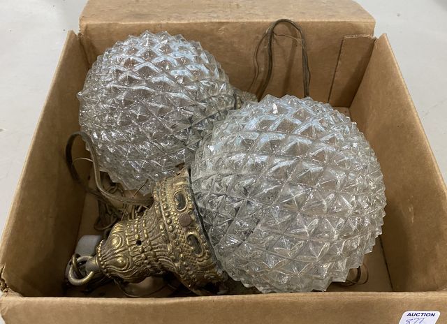 Pair of Vintage Hanging Light Fixtures, pressed globe shades. Pair of Vintage Hanging Light Fixtures, pressed globe shades.