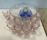 992 Group of Swirl Stemware, Large Plastic Serving Bowl, and Cups