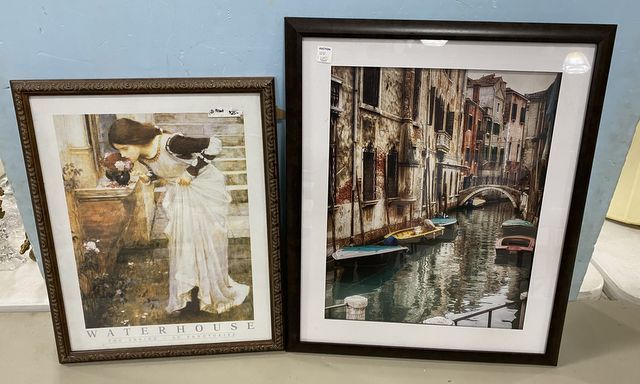 Waterhouse The Shrine Print and Print of Italian Waterway, framed, 26"h., 22"w. Waterhouse The Shrine Print and Print of Italian Waterway, framed, 26"h., 22"w.