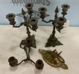 Vintage Candelabras, Three Arm Candle Holder, Brass Candle Wall Sconce. Vintage Candelabras, Three Arm Candle Holder, Brass Candle Wall Sconce.