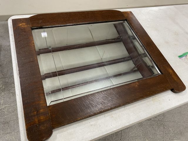 Vintage Oak Framed Mirror, beveled, 25"h., 30"w. Vintage Oak Framed Mirror, beveled, 25"h., 30"w.