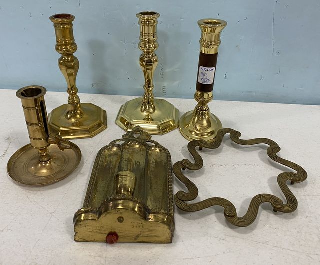 1105 Four Brass Candle Holders, Brass Wall Sconce