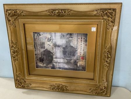 Ornate Framed Oriental Print, matted, glassed, frame is 26"h., 29"w. Ornate Framed Oriental Print, matted, glassed, frame is 26"h., 29"w.