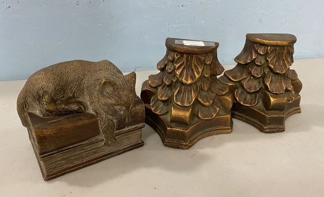 Pair of Vintage Metal Bookends, column style, and Metal Cat on Books. Pair of Vintage Metal Bookends, column style, and Metal Cat on Books.