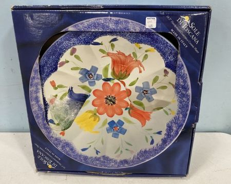Sole Di Toscana 18.5" Hand Painted Ceramic Centerpiece Ceramic Platter, in box. Sole Di Toscana 18.5" Hand Painted Ceramic Centerpiece Ceramic Platter, in box.
