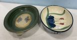 1243 Signed Stoneware Pottery Dish and Gail Pittman Hand Painted Ceramic Bowl