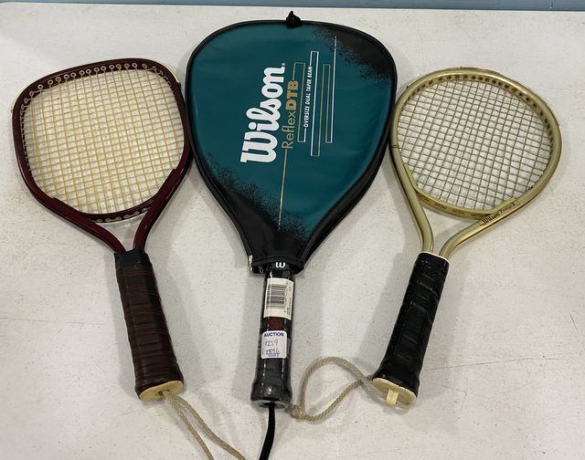 Three Wilson Racquet Ball Racquets, good condition, one with case Three Wilson Racquet Ball Racquets, good condition, one with case