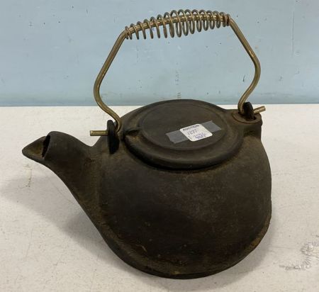 Antique Iron Kettle, swivel lid, metal handled, above average condition. Antique Iron Kettle, swivel lid, metal handled, above average condition.