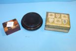 Venetian box 4"x 2", inlay box 2" x 2" stand 3"dia. Venetian box 4"x 2", inlay box 2" x 2" stand 3"dia.