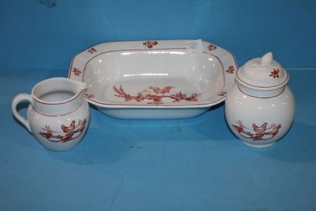 Creamer, sugar, vegetable, and bowl. Creamer, sugar, vegetable, and bowl.