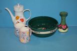 296 Germany Porcelain Teapot, 2 Mugs, Gail Pittman Vase, Gail Pittman Bowl