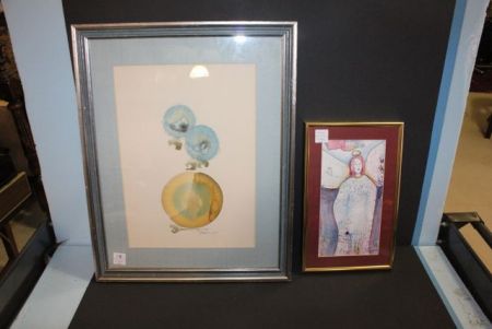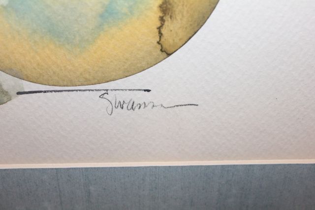 Abstract watercolor signed Swanson 16"w., 18"h., Picture of Angle 7"w., 12"h. Abstract watercolor signed Swanson 16"w., 18"h., Picture of Angle 7"w., 12"h.