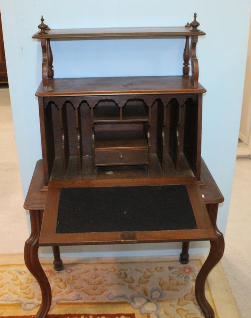 2pc. Walnut Victorian Drop Front Desk; 29 1/2"w., 19 1/2"d., 60"h. 2pc. Walnut Victorian Drop Front Desk; 29 1/2"w., 19 1/2"d., 60"h.