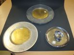 Four Italian Glass Underplates and Pewter Serving Bowl Four Italian Glass Underplates and Pewter Serving Bowl