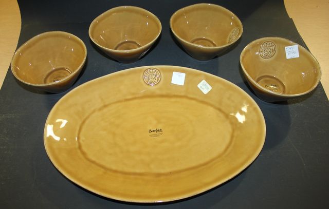 Four Casa Stone Cereal Bowls and Platter Four Casa Stone Cereal Bowls and Platter