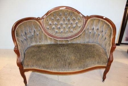 Victorian Walnut Finger Rolled Settee 55"w., 34"h. Victorian Walnut Finger Rolled Settee 55"w., 34"h.