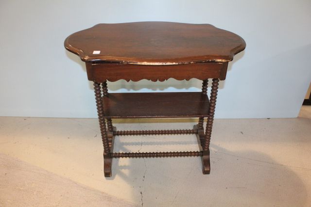 601 Mahogany Spool Table with Shelf