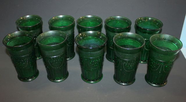 Set of 10 Depression Dark Green Tumblers Set of 10 Depression Dark Green Tumblers