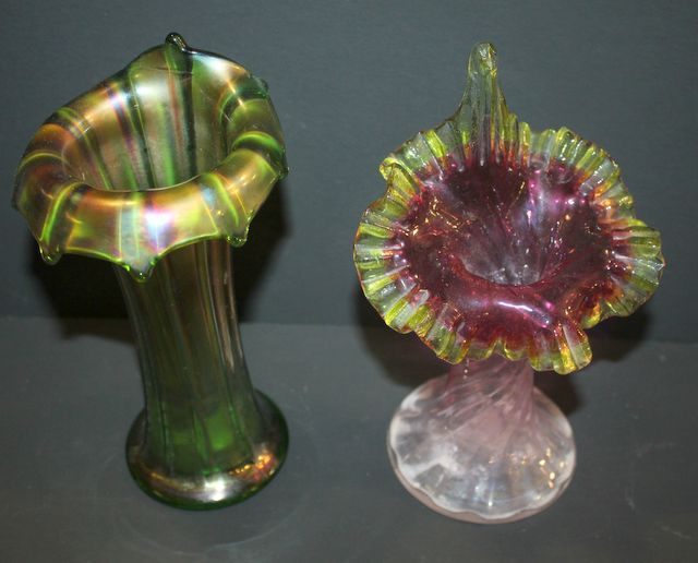 Trumpet Glass Vase (Damaged) 8"h, Carnival Glass Trumpet Vase 9"h Trumpet Glass Vase (Damaged) 8"h, Carnival Glass Trumpet Vase 9"h