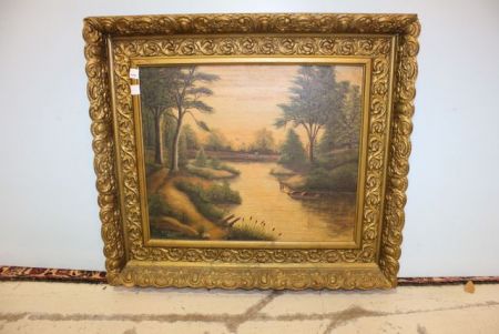 Oil Painting "Taking Flight" framed in ornate gold frame, signed and date by Borchardt, 1954 26" x 30"h Oil Painting "Taking Flight" framed in ornate gold frame, signed and date by Borchardt, 1954 26" x 30"h