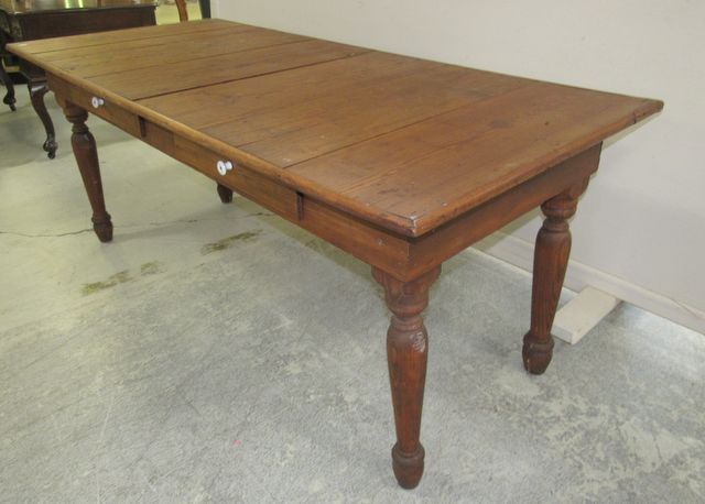 Primitive style farm dining table with two drawers on side, has border trim around the top, 30"h., 72"L., 33"w. Primitive style farm dining table with two drawers on side, has border trim around the top, 30"h., 72"L., 33"w.