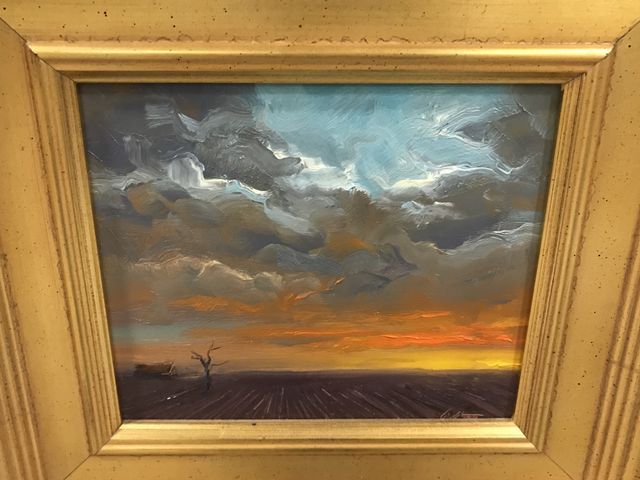 "Delta Study" oil on board framed gold gilt framed 10"h., 10 1/2"w., painting is 5" x 7", signed Greg Cartmell. "Delta Study" oil on board framed gold gilt framed 10"h., 10 1/2"w., painting is 5" x 7", signed Greg Cartmell.