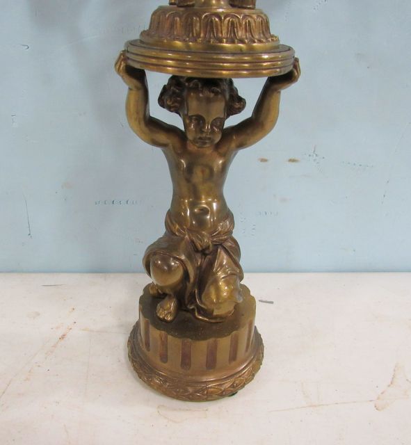 Vintage child figure brass four candle holder, 21"h., 12"w. Vintage child figure brass four candle holder, 21"h., 12"w.