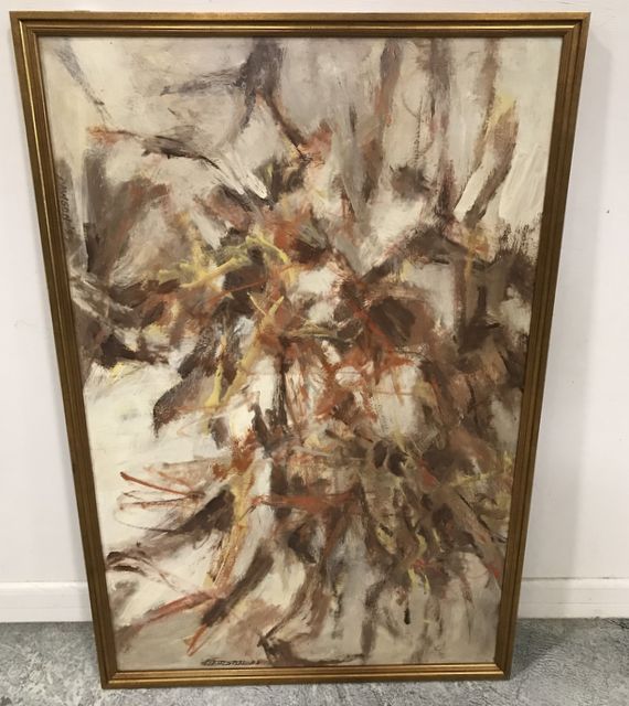 Abstract painting on board by Bess Phipps Dawson 1958, born Tchula, MS, graduated from Belhaven, served as the president of the Mississippi Art Colony from 1976 to 1989, 50"h., 33"w. Abstract painting on board by Bess Phipps Dawson 1958, born Tchula, MS, graduated from Belhaven, served as the president of the Mississippi Art Colony from 1976 to 1989, 50"h., 33"w.