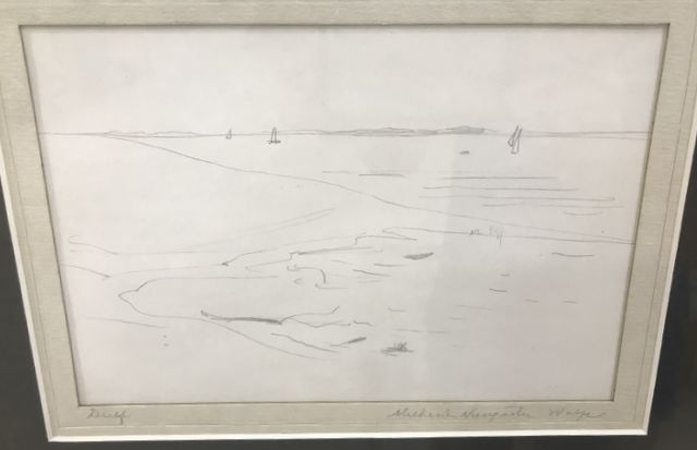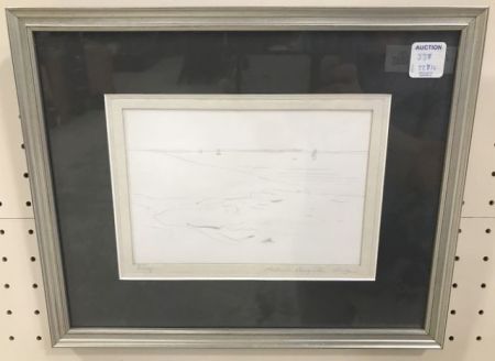 "Gulf" drawing with sailboats, framed 11"h., 13 1/2"w. "Gulf" drawing with sailboats, framed 11"h., 13 1/2"w.