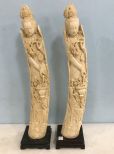 349 Pair of Alabaster Plastic Tusk Carved Replicas