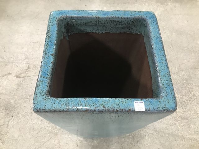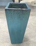 Large hand painted glazed planter, 34"h., 14"sq. Large hand painted glazed planter, 34"h., 14"sq.