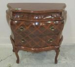 Reproduction two drawer bombay chest, checker design, 29"h., 28"w., 14"d. Reproduction two drawer bombay chest, checker design, 29"h., 28"w., 14"d.
