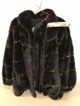 Mink jacket with striped design, black, includes matching scarf. Mink jacket with striped design, black, includes matching scarf.