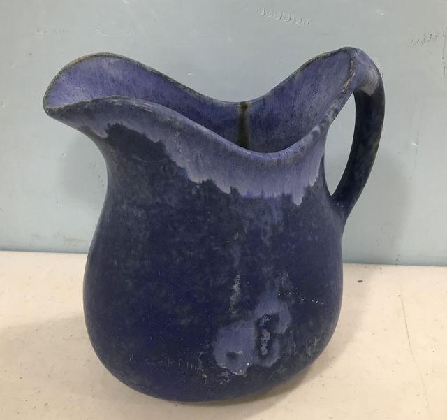 McCarty signed pottery pitcher, has some small nicks, 9"h., 8"w. McCarty signed pottery pitcher, has some small nicks, 9"h., 8"w.
