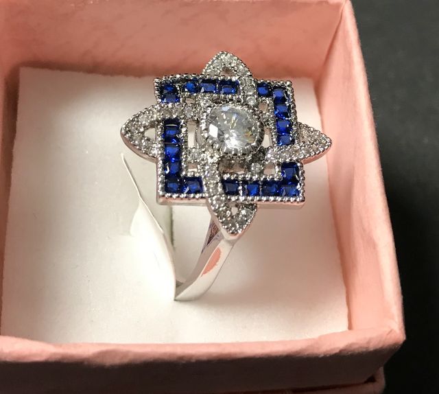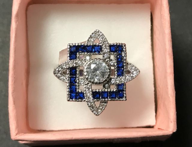 clear stone with blue surrounding stones, size 8 clear stone with blue surrounding stones, size 8