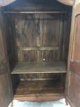 French style double door armoire entertainment center, clothes hanging rod, bottom shelf for storage or Tv stand, one piece, not heavy, Indonesia, 81"h., 44"w., 20"d. French style double door armoire entertainment center, clothes hanging rod, bottom shelf for storage or Tv stand, one piece, not heavy, Indonesia, 81"h., 44"w., 20"d.