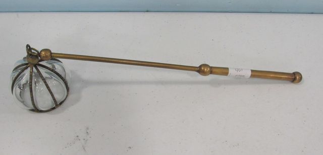 Brass handle and bubble glass end with brass frame, 12"L. Brass handle and bubble glass end with brass frame, 12"L.