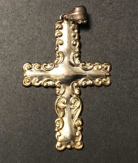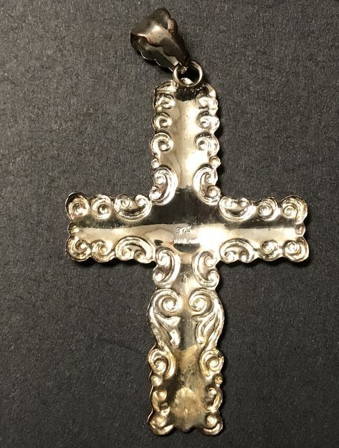 .925 sterling cross pendant, 1 1/2" x 3"h. .925 sterling cross pendant, 1 1/2" x 3"h.