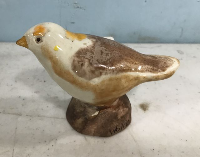 Wolfe Studios Pottery glazed bird, ceramic, singed Wolfe, 2 1/2"h., 4"w. Wolfe Studios Pottery glazed bird, ceramic, singed Wolfe, 2 1/2"h., 4"w.