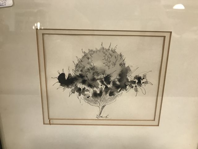 Framed, drawing of flower with watercolor on paper, signed Blanche, 11"h., 12"w. Framed, drawing of flower with watercolor on paper, signed Blanche, 11"h., 12"w.