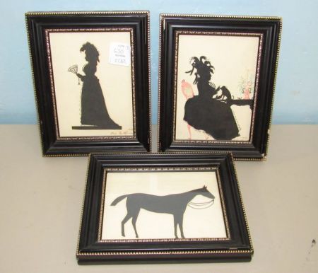 Signed, 1985, two of woman in dress, one of horse, 7"h., 5 1/2"w. Signed, 1985, two of woman in dress, one of horse, 7"h., 5 1/2"w.