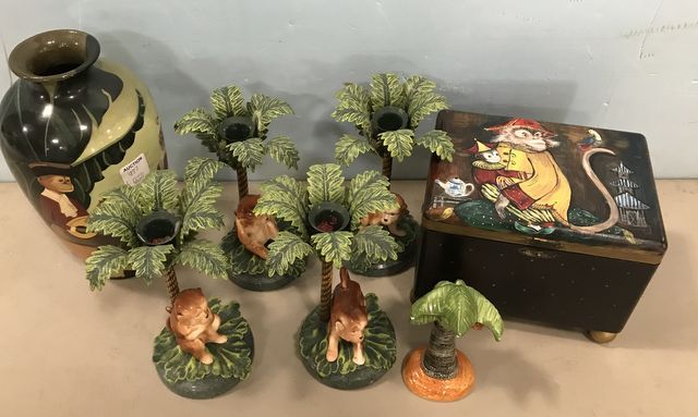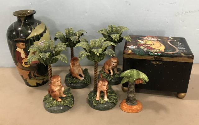 477 Petites Choses Monkey Candle Holders, Chinese Monkey Vase and Box